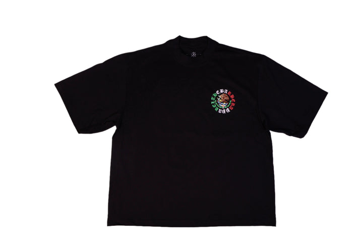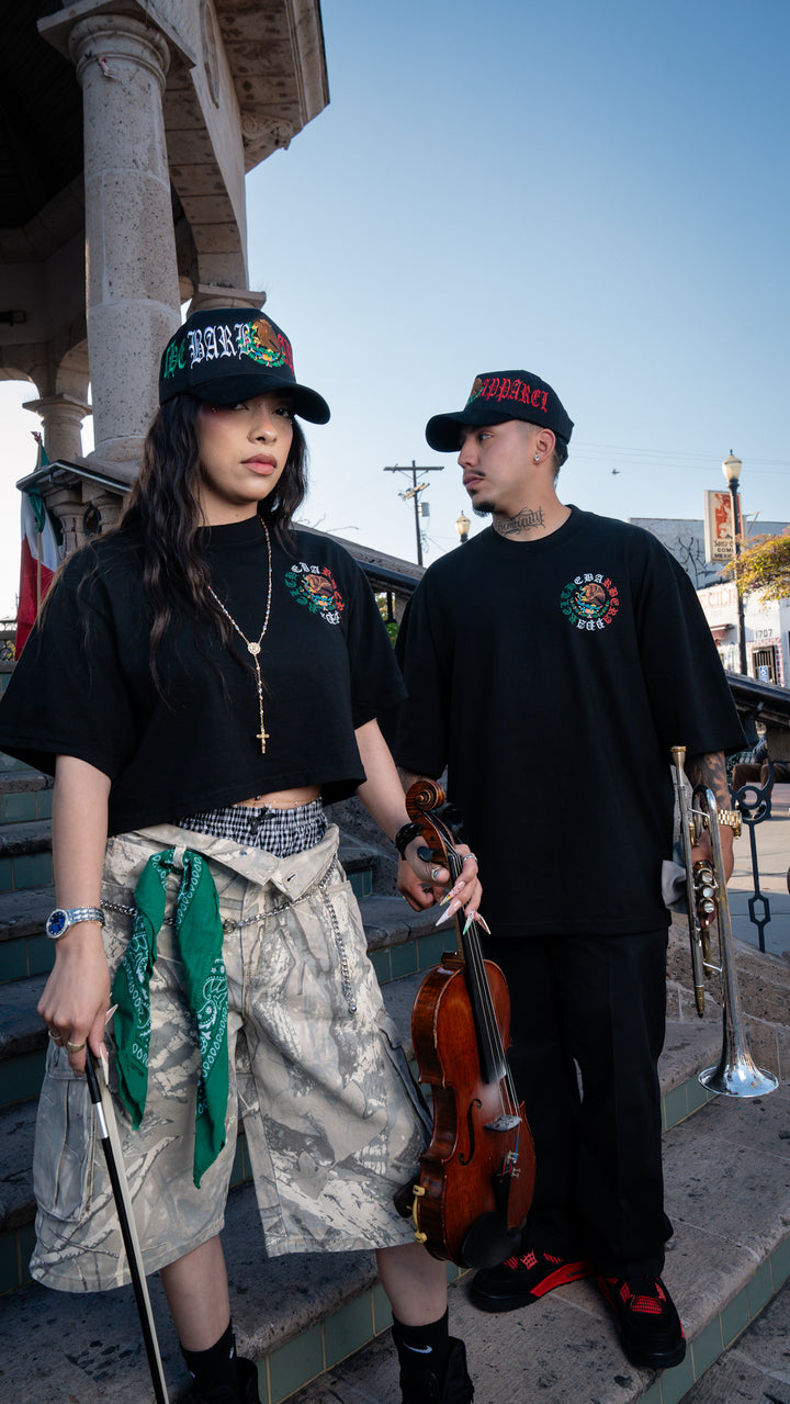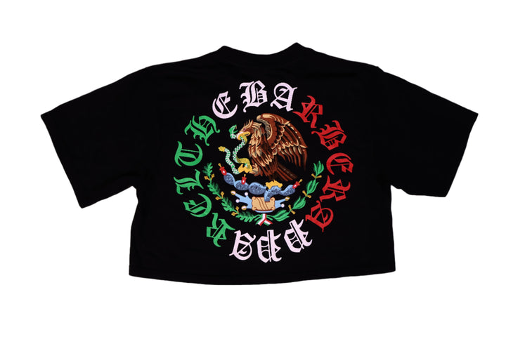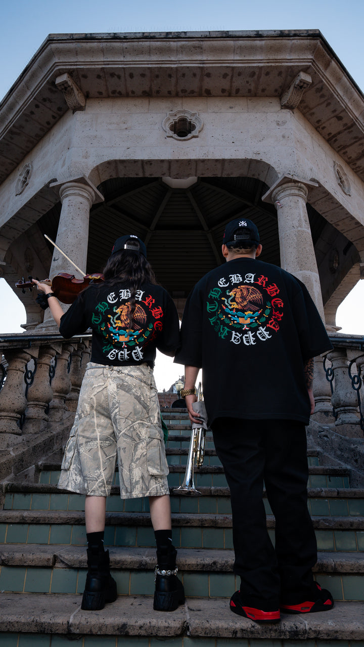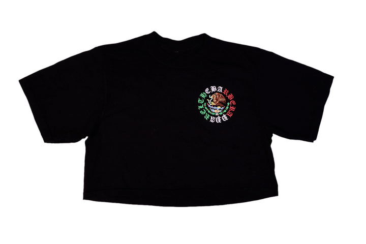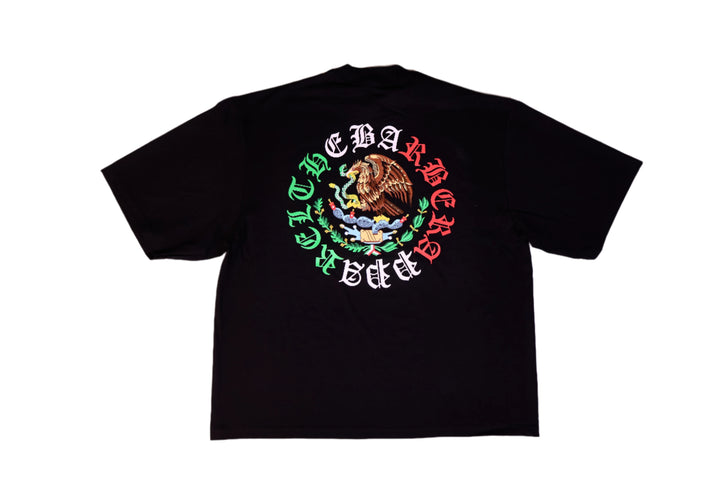 Introducing El Trono Tee, the newest addition to our Viva La Cultura Collection. Made from 100% cotton, this oversized crop tee is perfect and available for both men and women. Featuring a bold Mexican eagle design and "THE BARBER APPAREL" in old-english letters, this tee is a must-have for any fashion-forward individual. Stay stylish and comfortable with El Trono Tee.