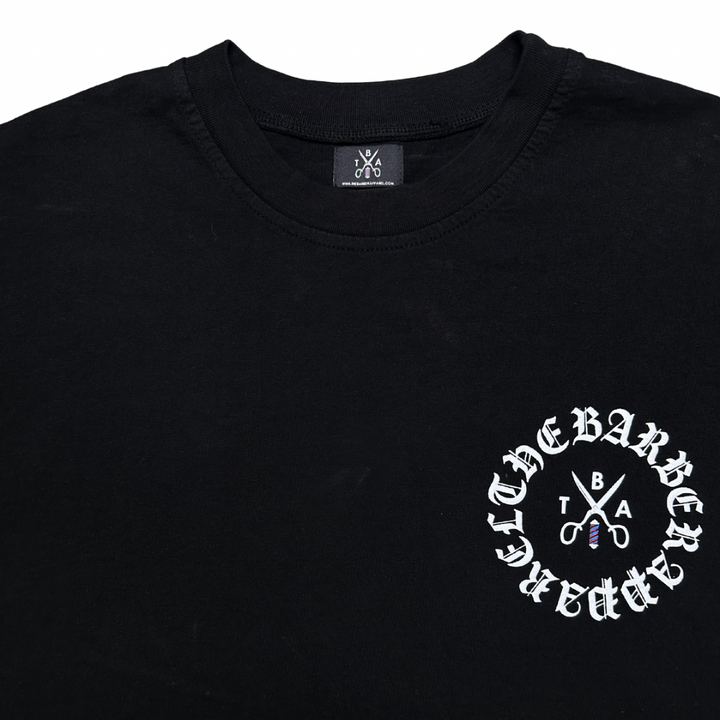Introducing the OE X TBA Shirt - the latest addition to The Barber Apparel collection. This unique shirt features a bold 3D puff print, a trendy crop top fit, and is available in classic black and beige colors. Made from high-quality 9oz fabric, this shirt is a must-have for any fashion-forward individual.